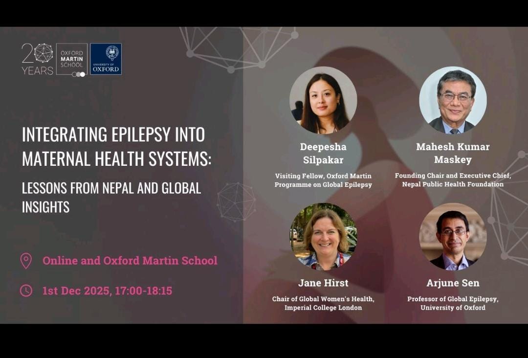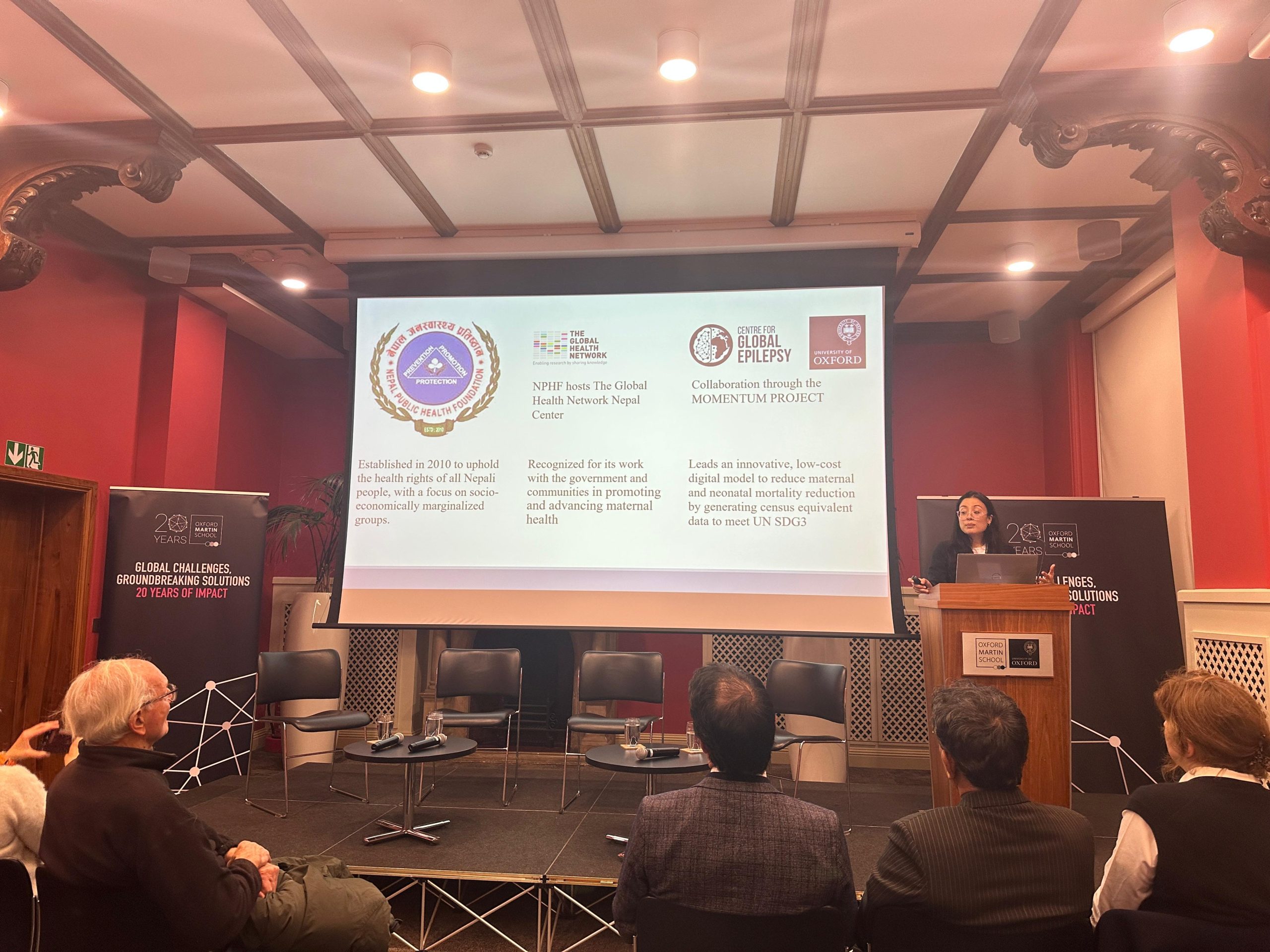 As part of her fellowship, she presented her research, “Integrating Epilepsy into Maternal Health Care Pathways: Lessons from Nepal and Global Insights,” at the Oxford Martin School. Her talk was followed by an insightful panel discussion with distinguished global experts.