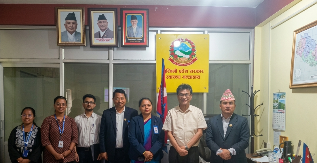 Dr. Mahesh Kumar Maskey delivered a detailed presentation to the Honorable Chief Minister of Lumbini Province, Chet Narayan Acharya, and the Provincial Minister of Health, Khem Bahadur Saru.